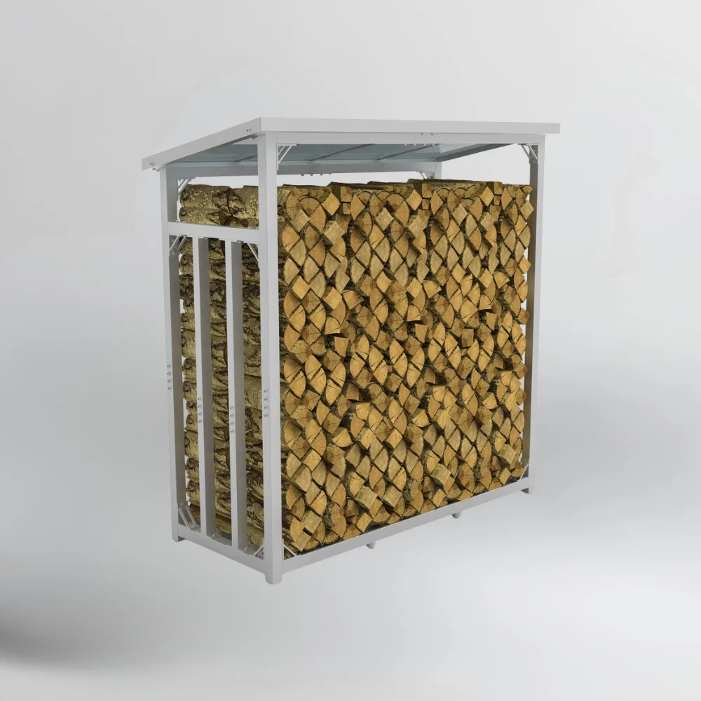 Optisch fügt sich das Regal mit seiner silbernen Oberfläche in RAL 9006 dezent in Garten, Hof oder Hauswand ein. Die Kombination aus verzinktem Stahl und Polycarbonat verbindet Funktionalität mit einer klaren, sachlichen Optik. Eine bebilderte Montageanleitung erleichtert den Aufbau Schritt für Schritt. Ein robustes, durchdachtes Feuerholzregal für alle, die Wert auf Ordnung, Schutz und langlebige Materialien legen.